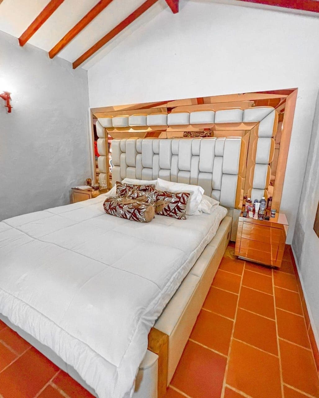 Stórkostlegt útsýni af einkasvölum. Stórt nútímalegt baðherbergi með heitu vatni, 50" sjónvarp. Rólegt og friðsælt. Tilvalið til að komast í burtu eða rómantískt frí. Hlið finka með öryggisskjá. The jacuzzi is a extra charge of 30,000 for the first hour. 20,000 per hour after that. Það er heildarverð... ekki á hvern einstakling.