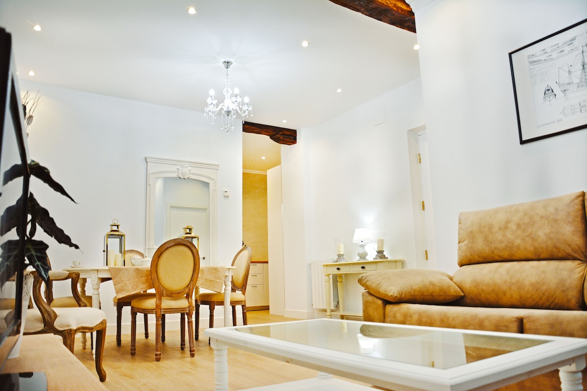 Einstaklega fjölbreytt bygging í stíl byggð árið 1887. Þetta er ein af byggingarperlum gamla bæjarins í Bilbao. Algjörlega endurnýjuð að halda ríkulegu, marmara, viðarútskurði. Skreytt með núverandi hönnun sem veitir hámarks þægindi. 4ra metra lofthæð, risastórir gluggar, járnsúlur úr smíðajárni og 165 metra af töfrandi húsi í rými sem gerir þér kleift að deila sögu Bilbao og ógleymanlegri dvöl. (Leyfisnúmer: EBI 01668)