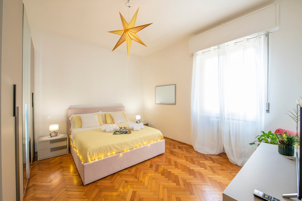 Bréf til Júlíu er björt og þægileg þriggja svefnherbergja íbúð í sögulegu hjarta Verona, skrefum frá Arena og húsi Júlíu. Hún er hönnuð fyrir afslöngun og næði og býður upp á sólríka stofu, fullbúið eldhús og notaleg svefnherbergi. Njóttu borgarútsýnis, hröðs þráðlaus nets, loftkælingar, fersks rúmfata og auðvelds innritunar. Tilvalið fyrir fjölskyldur, pör eða vini sem vilja upplifa rómantískustu borg Ítalíu með pláss til að slaka á. Meira en bara gisting — heimilið þitt í Verona.
