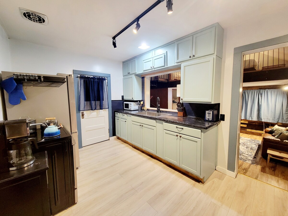 Nýbyggða, ljósa fyllta og rúmgóða ADU er hljóðlega í bakgarðinum okkar og fyrir ofan málverkastúdíóið mitt. Þetta er opið, rúmgott og nútímalegt heimili í risi með endurheimtum fir-gólfum, hillum, hégóma og hurðum. Í queen-rúminu er mjög þægileg náttúruleg latex foam dýna og í risinu er samanbrotinn sófi með svefnpúða úr minnissvampi í fullri stærð. Hér er vel útbúið eldhús og þvottavél og þurrkari til afnota. Ég býð einnig upp á kaffi og te fyrir dvöl þína.