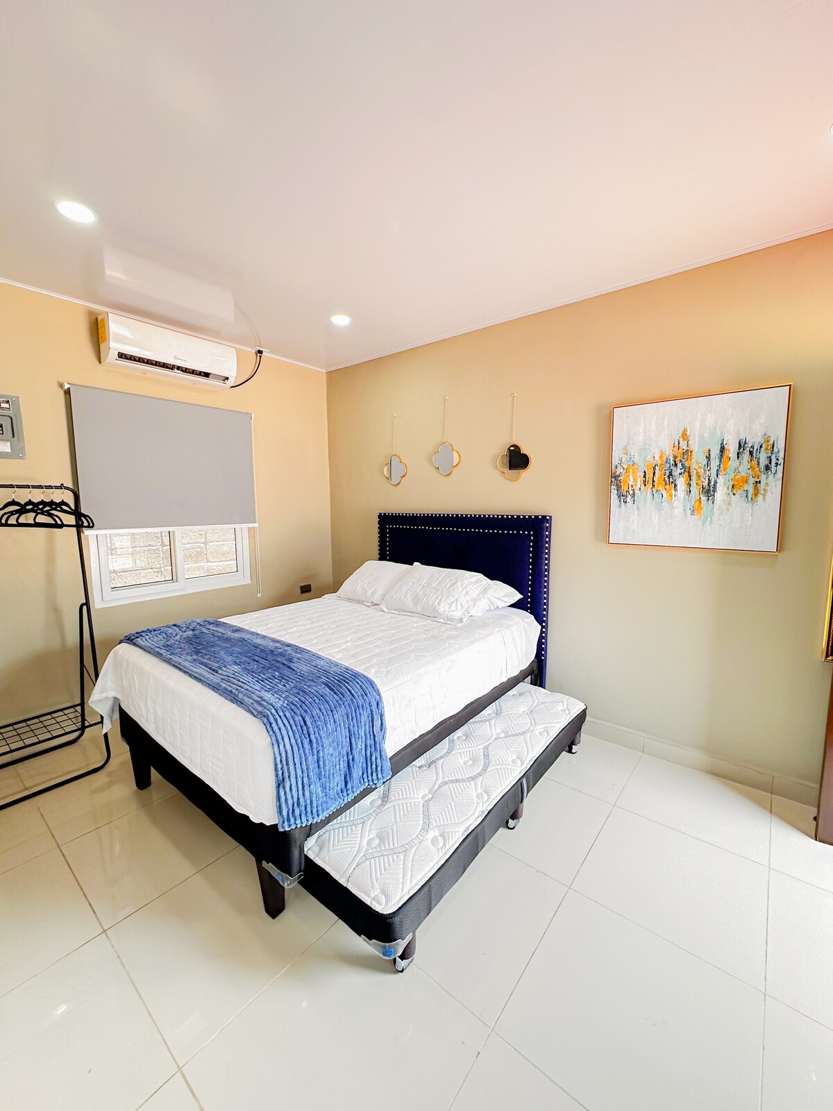 Welcome to Estancia los Laureles. Eign hönnuð fyrir ferðamenn eða skrifstofufólk sem fer í gegnum San Pedro Sula. Í íbúðinni eru tvö rými. Í öðru rýminu er svefnherbergið með queen-size rúmi og einu rúmi, baðherbergið og loftkælingin og í hinu rýminu er eldhúsið, svefnsófi og morgunverðarbar og vifta. Athugaðu að við erum ekki með heitt vatn eins og er. Við erum með tvö snjallsjónvörp og eldhús með eldavél og ísskáp, kaffivél og örbylgjuofni. Bílastæði fyrir 1 bíl.