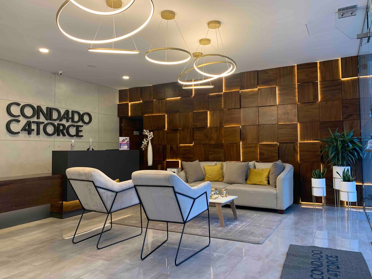 Komdu og njóttu stefnumarkandi staðsetningar á svæði 10, betur þekkt sem stofan, þú finnur EON-bygginguna, í kringum bestu hótelin, veitingastaðina, verslunarmiðstöðvarnar, barina, háskólana, sjúkrahúsin o.s.frv. Mjög nálægt Fontabella og Oakland-verslunarmiðstöðinni. Fullkominn staður fyrir gistingu í frístundum eða til lengri eða skemmri tíma og gerir heimsókn þína til Gvatemalaborg að ánægjulegri og fyrirhafnarlausri upplifun. Þessi einstaki staður hefur sinn eigin stíl.
