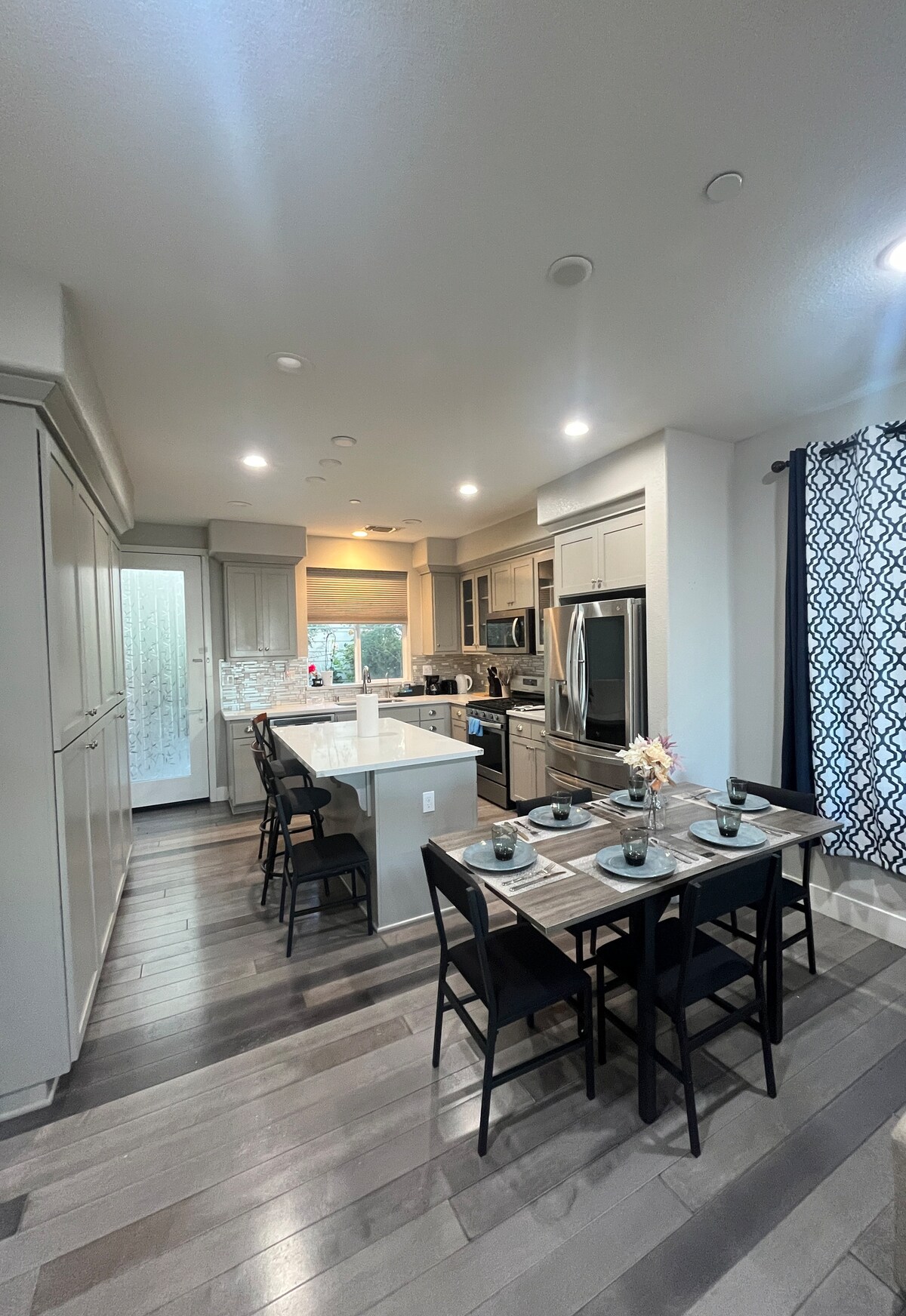 Gaman að fá þig á þetta rúmgóða heimili með 5 svefnherbergjum og 3 baðherbergjum. Hvert svefnherbergi er með sitt eigið snjallsjónvarp. Tvær stórar vistarverur með nóg að gera. Sundlaugar- og borðtennisborð, spilakassi , einka bakgarður, svalir með hjónaherbergi, bílastæði í bílageymslu, þráðlaust net án endurgjalds og þvottavél/þurrkari í einingunni. Einkaheimili á hornlóðinni með frábærum stöðum fyrir mat, afþreyingu og hraðbrautir til annarra stórborga Bay Area. Aðgangur án lykils auðveldar þér að komast inn.