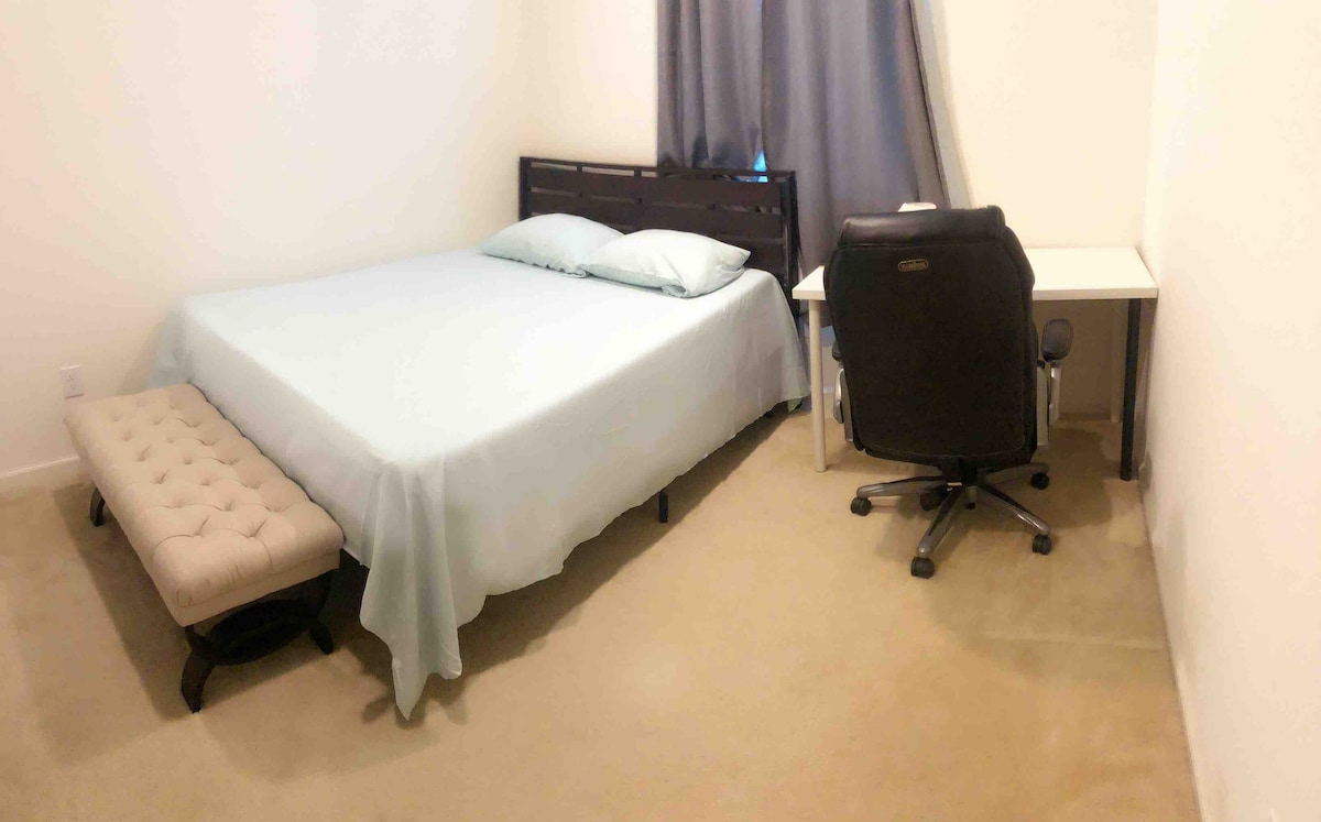 Heillandi einkaherbergi okkar (svíta) er staðsett á fyrstu hæð í raðhúsi ef þú vilt einka, þægilegan og miðsvæðis stað. Herbergið er með queen-size rúm, risastóran skáp og fullbúið baðherbergi. Sjálfsinnritunarkerfið okkar gerir ráð fyrir sveigjanlegum innritunartíma hvenær sem er eftir kl. 15:00. Tilvalið fyrir Stanford eða miðbæ Palo Alto gesti, matvöruverslunum og matvöruverslunum í nágrenninu. Frábært val fyrir þægilega og einkalega dvöl í Palo Alto.