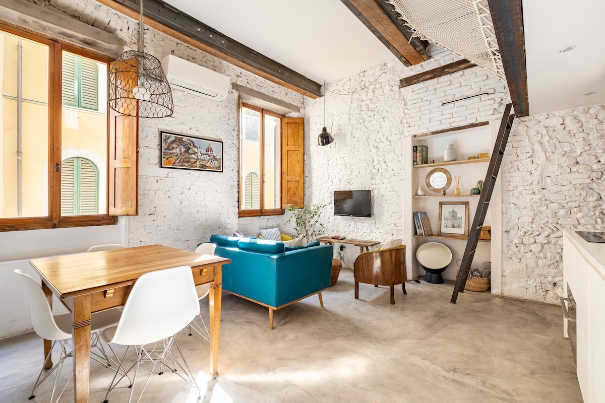 Rómantískt afdrep í hjarta Flórens. Berir múrsteinsveggir, nútímaleg hönnun, notaleg lýsing og risið til að kúra eða lesa í ró. Fullbúið eldhús, friðsælt svefnherbergi og björt stofa með einstökum sjarma. Staðsett á milli lista, sögu og lífsins á staðnum, aðeins nokkrum skrefum frá Santa Croce og Sant'Ambrogio. Fullkomið fyrir pör sem vilja þægindi, ósvikna upplifun og smá töfrar. Friðsæll staður í einstökum hluta Flórens.