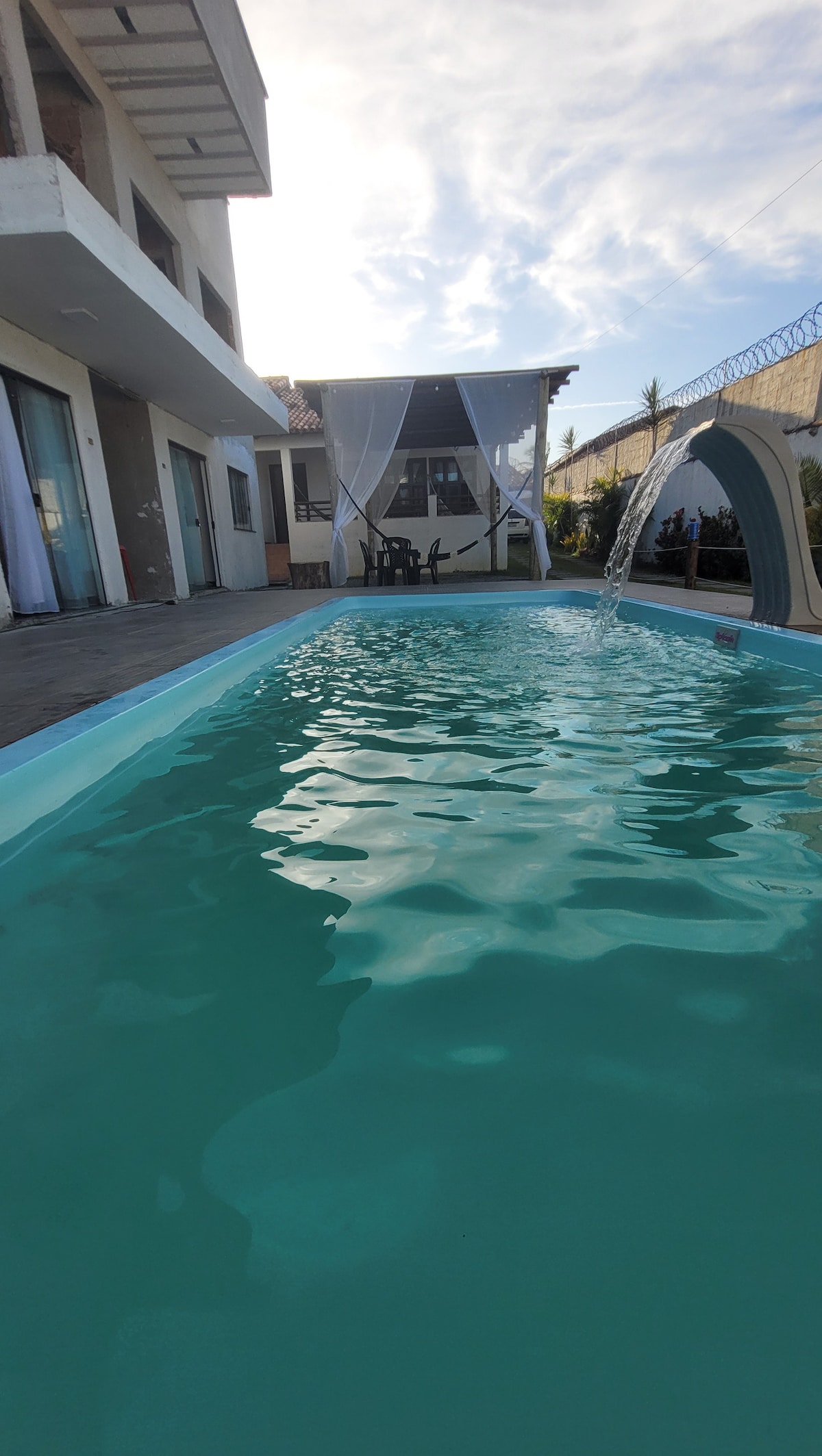 Farðu með alla fjölskylduna á þennan frábæra stað með nægu plássi til að skemmta sér. Kitnet með pláss fyrir 7 manns, vel búið eldhús, ísskáp, þjónustusvæði og baðherbergi. Í útigrilli, sturtu, sundlaug fyrir fullorðna og börn, bílastæði.
