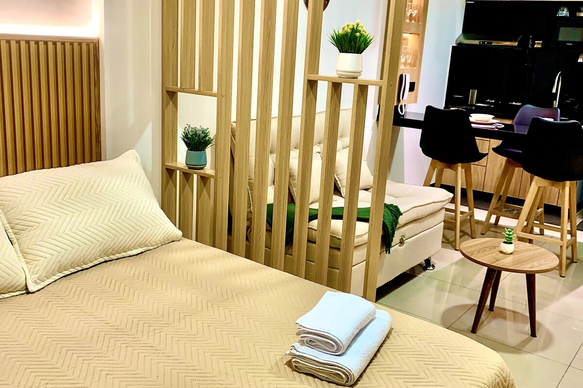 Njóttu dvalarinnar í hæstu eign á Airbnb í Santa Cruz og í bestu byggingu borgarinnar. Þú getur notið aðstöðu eins og sundlaugar, gufuböðs og stórkostlegs útsýnis frá 26. hæð í átt að fallegri Manzana 40-byggingu, náttúrunni í vistvænu svæðinu og urubo. Nokkur skref frá matvöruverslun, veitingastöðum, verslunarmiðstöð, viðskiptamiðstöð, bönkum, heilsulind. Í byggingunni eru hæstu og fallegustu veitingastaðirnir í Santa Cruz, Cielo skay bar og Jardin in Asia.