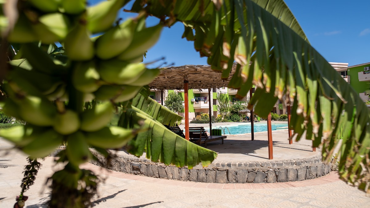 Staðsett steinsnar frá ströndinni við Sal (Grænhöfðaeyjar). Þetta er fullkominn staður til að slaka á, njóta sólarinnar og njóta sjávargolunnar. Gakktu að miðborg Santa Maria á 5 mínútum eða fáðu þér frískandi sundsprett í þaksundlauginni. Í íbúðinni er allt sem þú þarft til að láta þér líða vel á eyjunni þar sem „engin streita“ er stemningin eins og: - Loftræsting - Þvottavél - Fullbúið eldhús - Snjallsjónvarp - Hengirúm Bókaðu þér gistingu núna og upplifðu Grænhöfðaeyjar eins og best verður á kosið!
