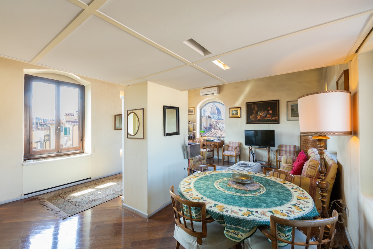 LIFÐU - einstakt húsnæði og bragðmikil upplifun í Flórens. GISTING - Í einkasvítu á 6. hæð (lyfta) með útsýni yfir Flórensþökin, Duomo og umkringdar hæðir Toskana. Þráðlaust net og loftræsting í boði. TASTE - Gullna gersemin okkar, jómfrúarolían sem er framleidd í Chianti (lífræn og köld pressa). Móttökugjöfin þín er falin í leynieldhúsinu. FLÓRENS - Þú ert 1 km frá aðallestarstöðinni (Santa Maria Novella), 1,5 km frá Duomo, yfirbyggt einkabílastæði í boði gegn beiðni