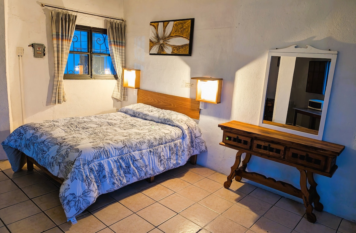 Á þessu heimili er aðeins tekið á móti 12 ára og eldri. Fullkomlega staðsett gistiaðstaða, í 5 mínútna göngufjarlægð frá 2 vörubílastöðvunum í Taxco. 7 mínútur frá sveitarfélagsmarkaðnum, bak við San Miguel kirkjuna, í 15 mínútna göngufjarlægð frá miðbæ Taxco og Santa Prisca kirkjunnar, nálægt handverks- og silfurmarkaðnum. Skref í burtu frá IMSS og Taxco heilsugæslustöðinni.