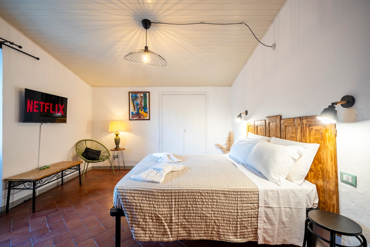 Íbúðin er í stóru amerísku vínviðarhúsi í miðbæ Borgo San Lorenzo. Húsið samanstendur af hjónaherbergi, eldhúsi og baðherbergi með sturtu. Fyrir utan er garður með gráum steinum og lífrænn garður fullur af grænmeti sem ræktað er af ást og fornum blómum frá öðrum tímum. Gistiaðstaðan er fyrir tvo, einhleypa eða par, en einnig er hægt að bæta við barnarúmi ef barn er á staðnum. Í Mugello-dalnum eru litlar gersemar með fágætri fegurð: miðaldaþorpið Scarperia, rómversku sóknirnar Borgo S. Lorenzo, Sant 'Agata og smábærinn San Giovanni, heimili málarans Giotto í Vicchio. Green walks on the trails of the woods in the Tuscan-Emilian Apennines, the succulent tortello mumble with potatoes, Bilancino Lake near Barberino del Mugello. Saga, náttúra og, ef þú hefur brennandi áhuga á mótorhjólum, er einnig til staðar Mugello International Racetrack. Það eru lestir og rútur til og frá Flórens Frá 1. maí 2019 við komu verður gerð krafa um greiðslu ferðamannaskatts til sveitarfélagsins Borgo San Lorenzo, með reiðufé, sem jafngildir € 1,50 á dag á mann, að hámarki 6 daga samfleytt. Frá fyrsta degi maí þurfa gestgjafar að greiða ferðamannaskatt (fyrir sveitarfélagið Borgo San Lorenzo) þegar þeir koma (með reiðufé). Ferðamannaskatturinn er 2,00 evrur á dag fyrir hvern einstakling til sjötta dags (frá sjöunda degi er ókeypis).