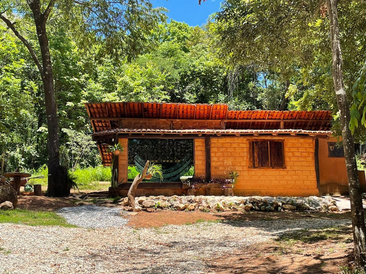 Húsið er einfalt, sveitalegt, roça gerð, með straumi sem fer í næsta húsi og myndar náttúrulegar laugar til einkanota fyrir gesti; Það er hægt að bóka það af pari, fjölskyldu, nokkrum pörum eða vinum og fjölskyldu. Notkun hússins og tómstundasvæðisins er eingöngu fyrir leigutaka Ytra grill, eldhús með viðarinnréttingu og gasi; 5 svefnherbergi, 4 svítur með hjónarúmi og 1 svefnherbergi með kojum. Húsgögnin eru einföld og einföld baðherbergi