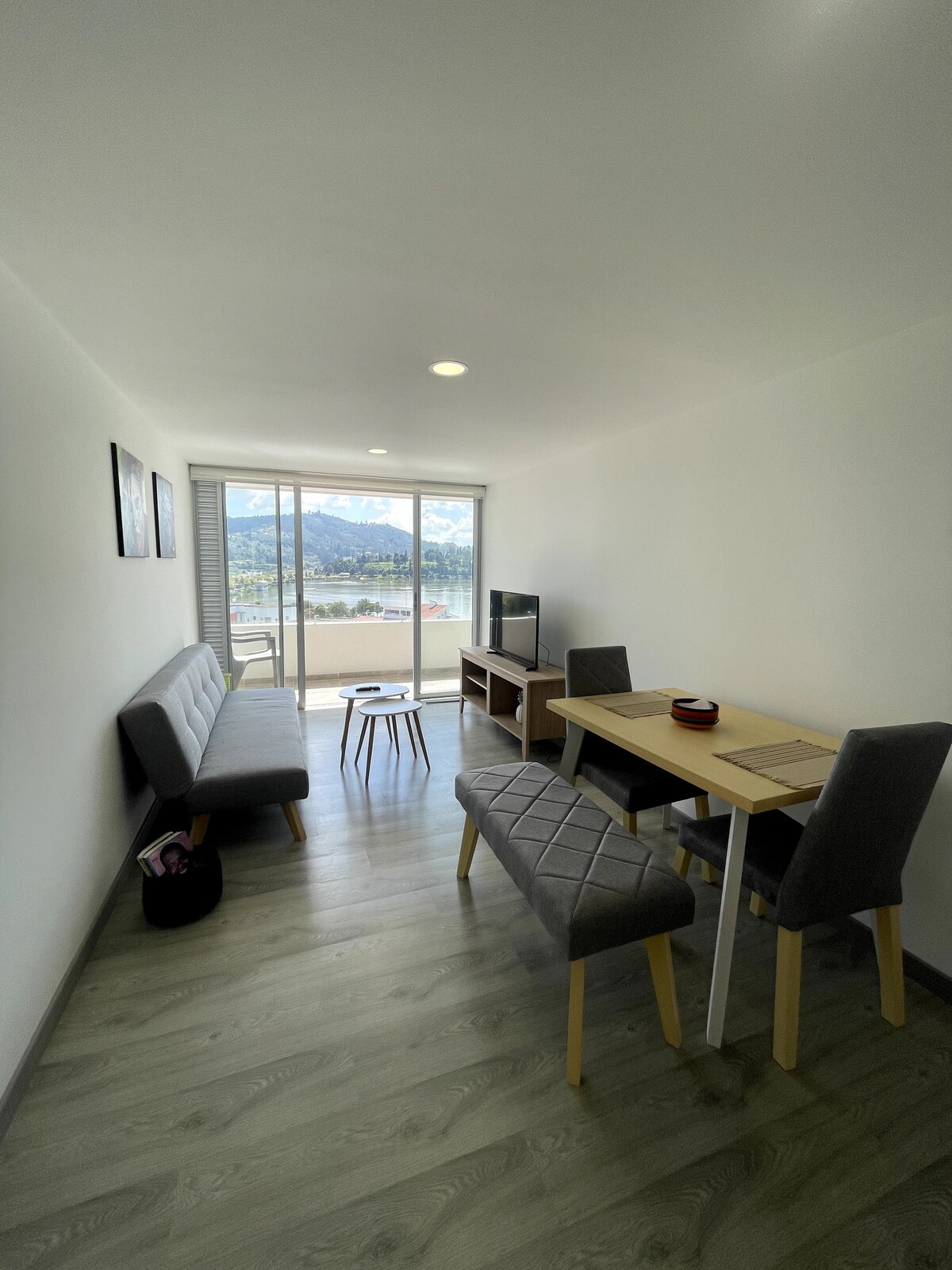 Verðu nokkrum dögum í afslöppun í fallegri, nútímalegri og þægilegri íbúð með útsýni yfir Sochagota-vatn í Paipa. Þetta er fullkomin áætlun til að njóta með fjölskyldu eða vinum. Staðsetningin gerir þér kleift að skipuleggja þig með mismunandi hætti eins og að hreyfa þig í kringum vatnið, njóta ríkulegra veitingastaða, vatnsafþreyingar eins og hjóla, kajaka, canotaje og jetski. Það er staðsett við hliðina á hótelgeiranum og í nokkurra mínútna fjarlægð frá flugvellinum. Útsýnið er stórkostlegt, hvíldu þig og hladdu þig.