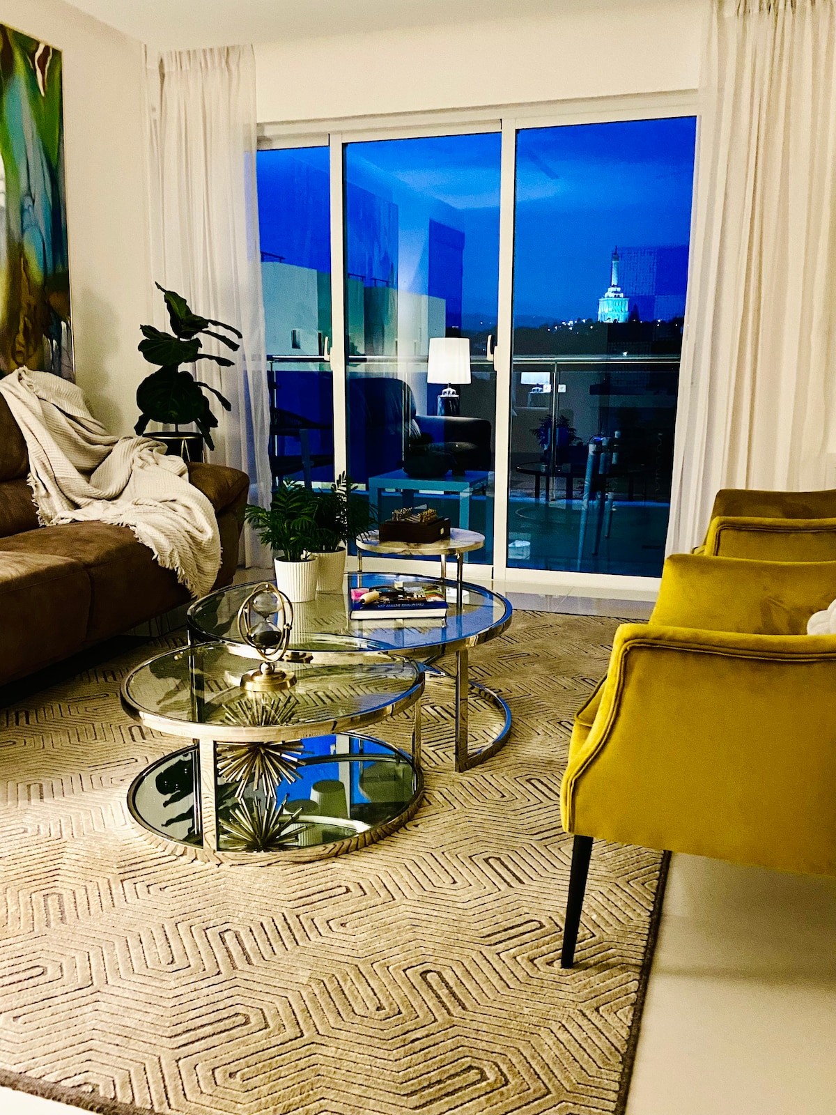 This is a beautiful exclusive suite on the 12th level of the tower with a panoramic view. The concept is modern and luxury . Led iluminated ceilings. Air conditioning in both the living room and bedroom offer a pleasant climate. A very comfortable bed for a good night sleep . 50 -Inch TVwith NETFLIX,WiFi,cable and other amenities are included. Located in one of the most prestigious and secure areas .Whether it’s a business trip or a relaxation vacation, this will be the perfect getaway.