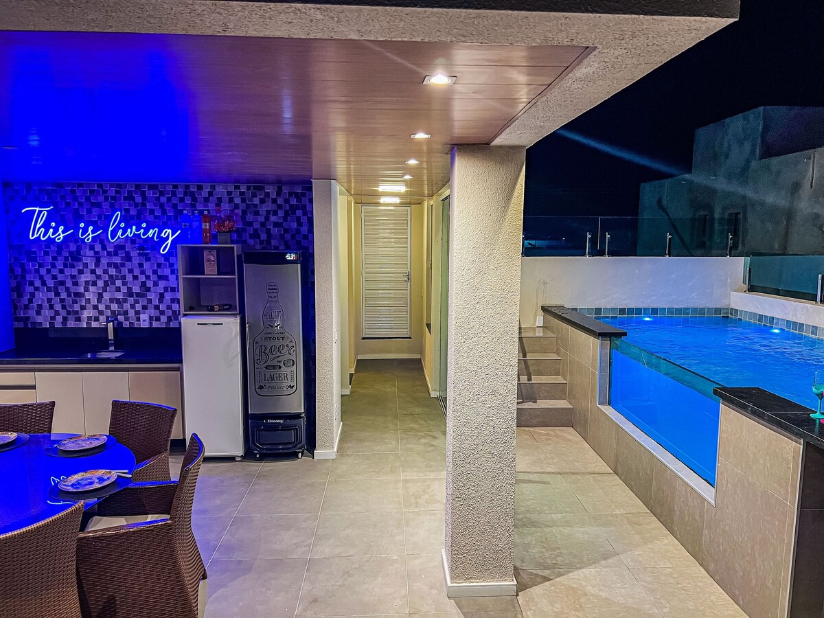 Kynnstu Casa Biana, fríi í Barreirinhas, inni í besta lokaða samfélaginu með aðgang að Preguiça ánni. Það eru 4 svítur , 6 baðherbergi, fullbúið eldhús, sundlaug, grill, sjónvarp í öllum herbergjum og loftkæld stofa. Hér er fullkomin umgjörð fyrir ánægjustundir sem fjölskylda eða með vinum. Með færanlegu barnarúmi og matarstól. Nálægt einkaströnd og í 7 mín fjarlægð frá miðbænum er heimili okkar tilvalin miðstöð til að skoða sjarma heimamanna og Lençóis Maranhenses. Lengi lifi töfrarnir!