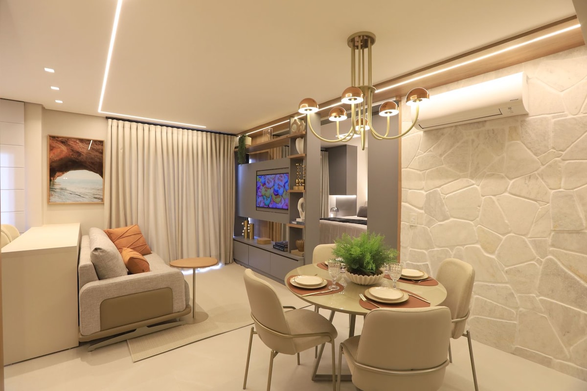 The Flat hefur arkitektúr undirritað af einum þekktasta fagfólki Goiânia. Hugmyndin er sú að þér líði vel á meðan á dvölinni stendur.Allt sjálfvirkt; ljós, fortjald, sjónvarp, loftkæling sem býður upp á þægindi og fágun, spurðu bara Alexa. Hlustaðu á tónlist, horfðu á yfir 1.600 rásir opnar og lokaðar. Farðu í góða sturtu með rausnarlegri sturtu. Taktu myndir og hvíldu þig á svölunum með frábært útsýni yfir sólsetrið og akrílloftið.