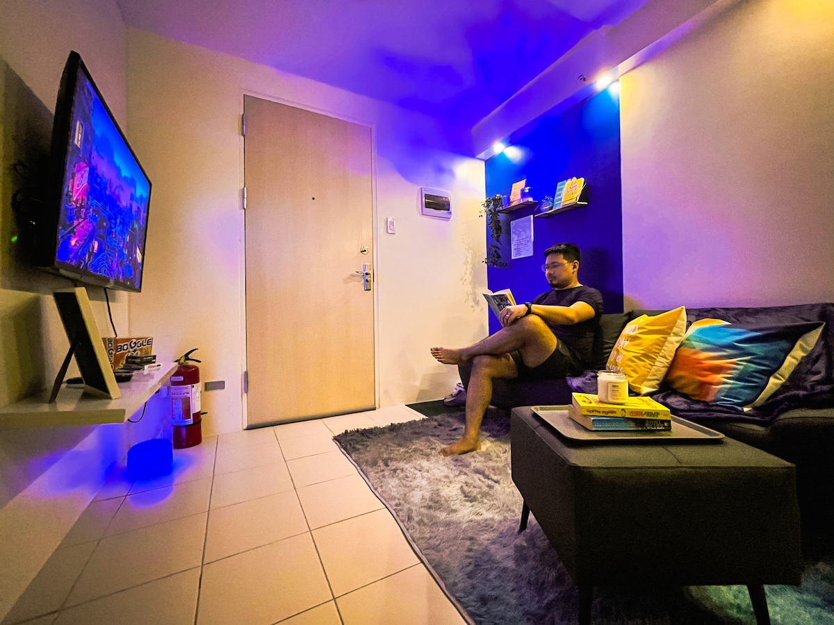 Líður eins og heimili í nútímalegri einingu. Fersk og listræn hönnun veitir þér þægilega búsetu, með notalegri lýsingu til að slaka betur á. Þessi íbúðarbygging er kyrrlát í íbúðabyggðinni í Village East executive Homes, Felix Avenue, Cainta Þessi eining er fullkomin fyrir par, lítinn vinahóp sem elskar að koma saman, slaka á meðan þú vinnur að heiman í friðsælu umhverfi. Með hröðu þráðlausu neti um 25mbps til 50mbps hraða, sjónvarpi og Netflix