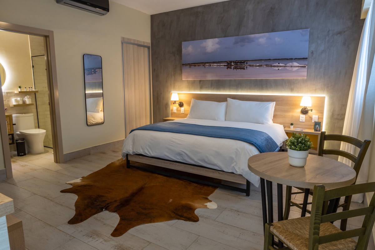 Ris 103 í Casa Adefra, staðsett við El Conde-götuna í hjarta nýlendusvæðisins. Gakktu auðveldlega að helstu áhugaverðum stöðum, veitingastöðum og kaffihúsum. Þetta loft er með þægilegri stofu (engum svölum). Eiginleikar herbergis: - Aðgangur að herbergi án lykils -Sérbaðherbergi -Snjallsjónvarp með kapalsjónvarpi og Netflix - Öryggishólf í herbergi -Loftræsting -Rafmagnshitari -Eldhúskrókur með tveggja brennara rafmagnseldavél -Ókeypis hröð Wi-Fi-tenging Dagleg þrif og morgunverður innifalinn. Móttaka í boði allan sólarhringinn.