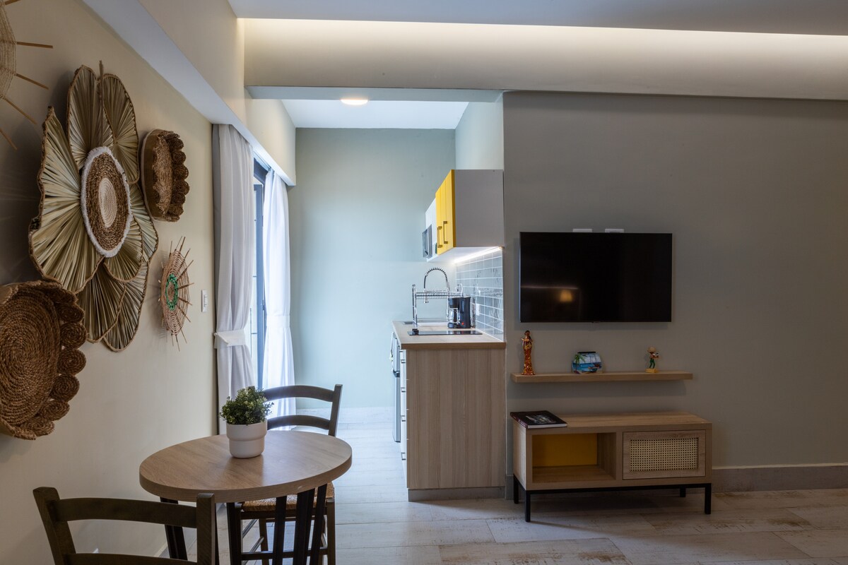 Loft 103 at Casa Adefra, located on El Conde Street in the heart of the Colonial Zone. Walk easily to the main attractions, restaurants, and cafés. This loft features a comfortable living room (no balcony). Room features: -Keyless room access -Private bathroom -Smart TV with local cable and Netflix -In-room safe -Air conditioning -Electric water heater -Kitchenette with two-burner electric stove -Free high-speed Wi-Fi Daily housekeeping and breakfast included. Front desk available 24/7.