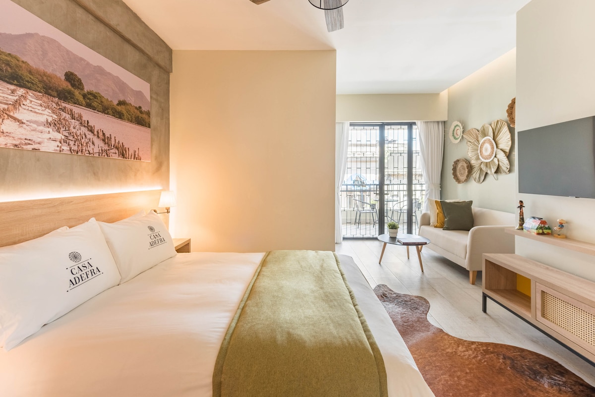 Ris 103 í Casa Adefra, staðsett við El Conde-götuna í hjarta nýlendusvæðisins. Gakktu auðveldlega að helstu áhugaverðum stöðum, veitingastöðum og kaffihúsum. Þetta loft er með þægilegri stofu (engum svölum). Eiginleikar herbergis: - Aðgangur að herbergi án lykils -Sérbaðherbergi -Snjallsjónvarp með kapalsjónvarpi og Netflix - Öryggishólf í herbergi -Loftræsting -Rafmagnshitari -Eldhúskrókur með tveggja brennara rafmagnseldavél -Ókeypis hröð Wi-Fi-tenging Dagleg þrif og morgunverður innifalinn. Móttaka í boði allan sólarhringinn.