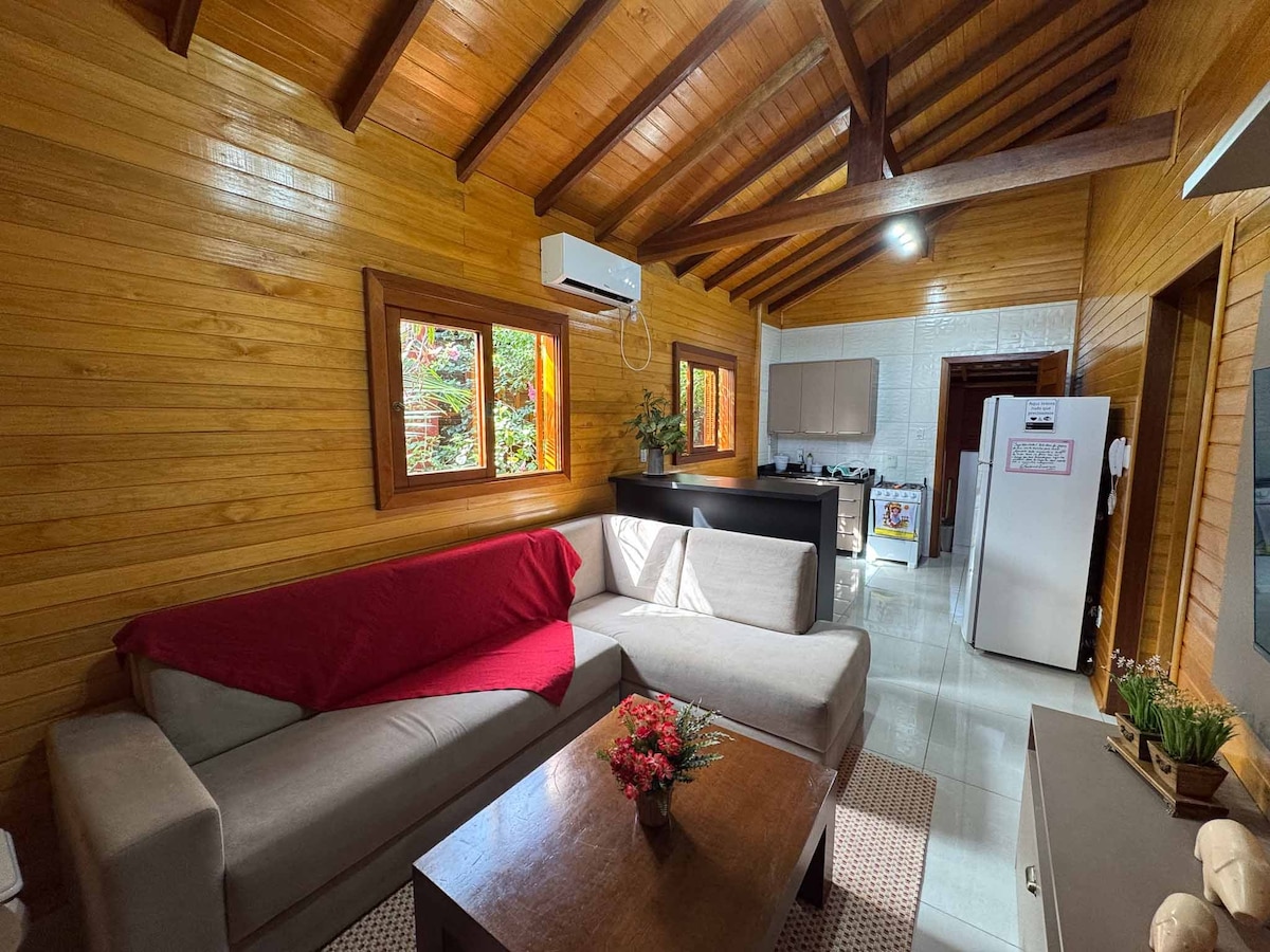 Slakaðu á í þessu hljóðláta húsi með 1 svefnherbergi nálægt ánni sem er umkringt náttúrunni. Þetta er nýtt hús með hlýlegum og nútímalegum smáatriðum. Uppruni nafns: Timbó er eitt af trjánum sem við fundum á staðnum þegar við byrjuðum að byggja en þrátt fyrir að það hafi verið hrun endurheimtum viðinn til að byggja borðin í húsinu og heiðrum þannig minningu hans. Bahía vegna þess að við bjóðum upp á kyrrlátt rými nálægt ánni. Frá svölum hússins má sjá apa og fugla á svæðinu marga eftirmiðdaga.