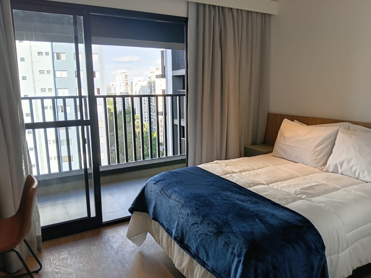 Nýtt stúdíó í nýrri íbúð í 180 metra fjarlægð frá neðanjarðarlestinni fyrir tvo! Tenging og tækni > þráðlaust net á miklum hraða > snjallsjónvarp með netaðgangi > rafrænn lás Þægindi > Rúm af queen-stærð > fullbúið eldhús > loftræsting > linda vista Fullbúin íbúð > Einkaþjónusta allan sólarhringinn > laug > samstarf > líkamsrækt > þvottur Greitt fyrir hverja notkun Forréttinda staðsetning > Rua Madre Cabrini, 99 > 180 m neðanjarðarlest (u.þ.b. 3 mín ganga) > 2. hæð Ekkert bílastæði
