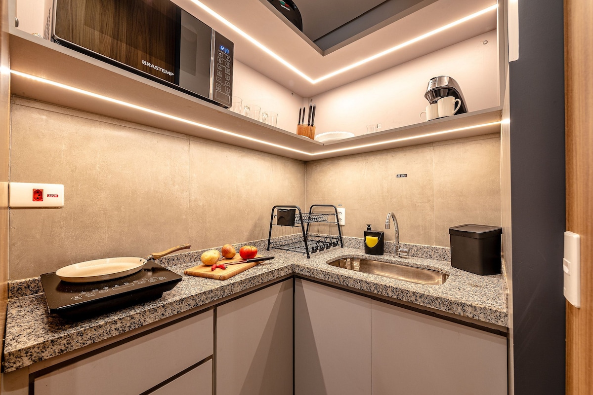 Estúdio espaçoso com muito design, arquitetura e a melhor vista de São Paulo. Loft completo! Com cama queen, closet, ar condicionado silencioso, cozinha completa, home office, WI-FI, TV 55” e uma belíssima banheira de imersão, de onde pode apreciar o seu drink preferido e curtir uma vista apaixonante. São Paulo toda estará há poucos minutos de você. Acesse o metrô andando apenas 200m. Reserve com tranquilidade! Proporcionaremos uma excelente hospedagem e uma ótima experiência!