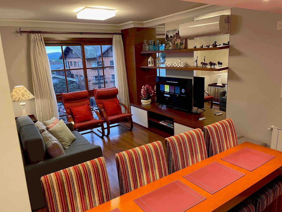 Þessi ótrúlega hágæða íbúð hefur verið endurhönnuð að fullu! Það býður upp á 180m2 og glæsileika í hverju smáatriði, stóra glugga með einstöku útsýni yfir Quilombo-dalinn, 70"snjallsjónvarp í stofunni og 43" í tveimur svefnherbergjum! Það er auk þess aðeins 2 húsaröðum frá Coberta-stræti! Vegna þess að það er staðsett í miðju, verður þú að vera fær um að gera margt á fæti, hafa þægindi af því að yfirgefa bílinn og íhuga með friði og ró allt sem Gramado hefur uppá að bjóða!
