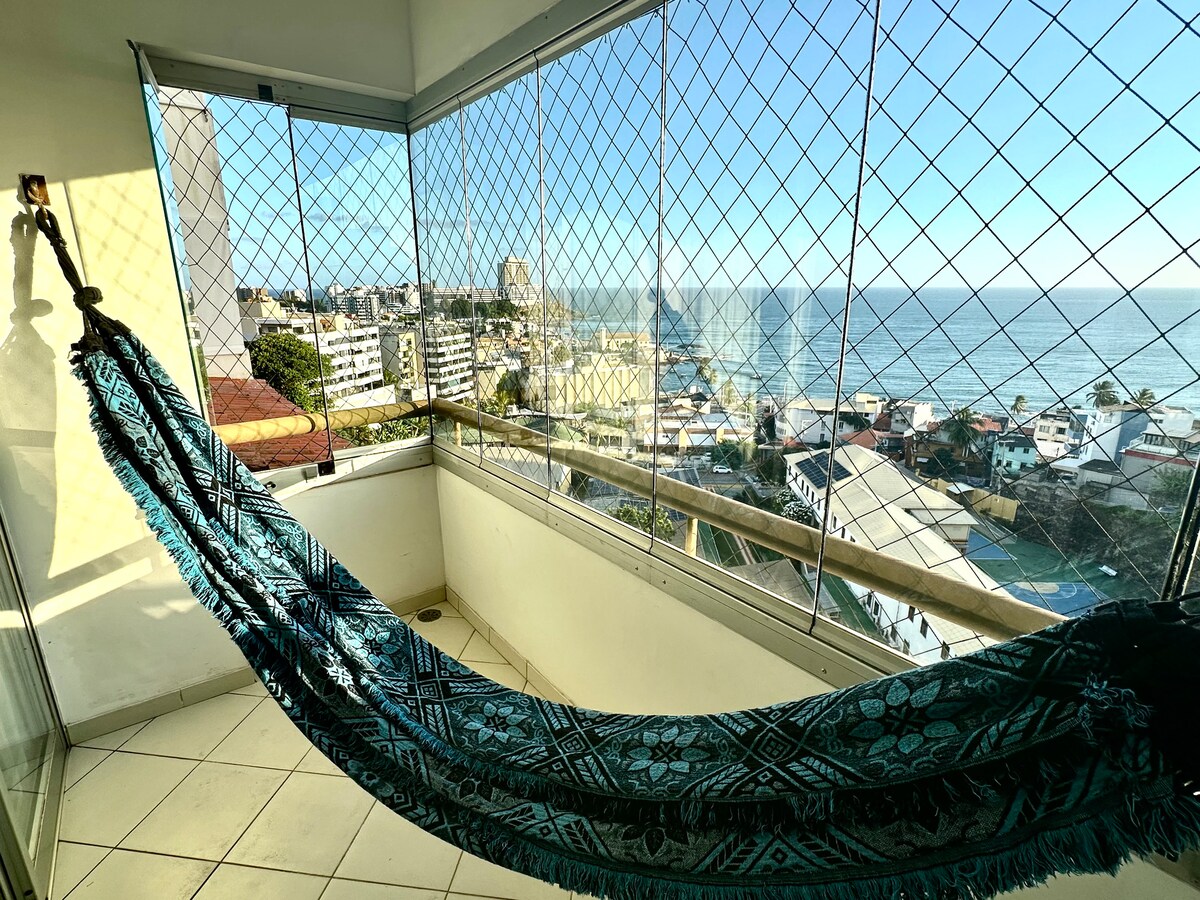 Apartamento de um dormitório com com 180° de vista mar, localizado em frente a uma das mais belas praias de Salvador. Acomoda confortavelmente 4 pessoas. O condomínio possui total infraestrutura com piscinas adulto com raias de 25metros e infantil, sauna, academia, garagem, espaço gourmet, etc.