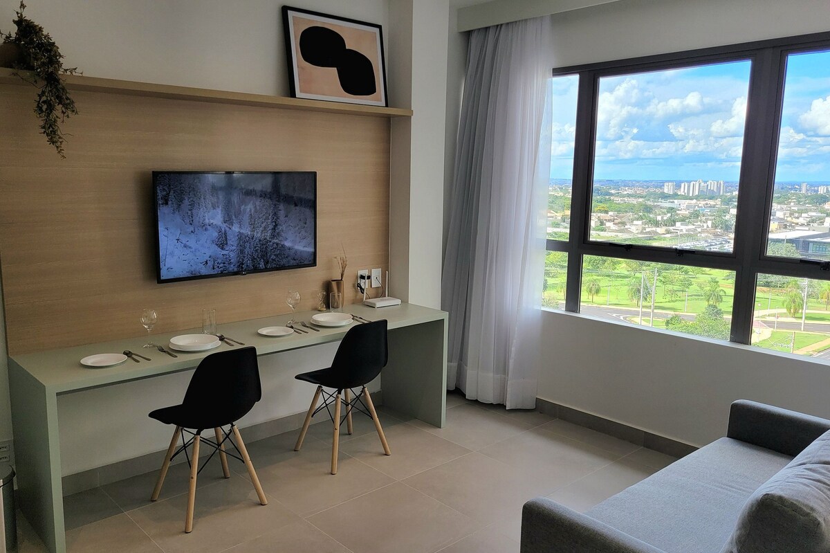 Komdu þér á óvart með þessari íbúð sem er staðsett innan Square Faria Lima samstæðunnar (Comfort Suites). Frábært útsýni yfir borgina okkar, sundlaug, gufubað, líkamsræktaraðstöðu, veitingastað og leikjaherbergi. BESTA STAÐSETNINGIN Í BORGINNI: Við hliðina á Hospital de Base, Charity, HORP. Við hliðina á Shopping Rio Preto, Plaza og Redentora Region. Hér er frábær morgunverður (EKKI INNIFALINN). Móttaka allan sólarhringinn, þráðlaust net, sundlaug, leikjaherbergi og líkamsrækt.