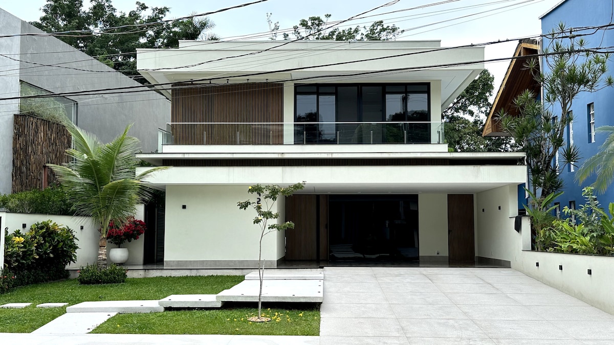 Gaman að fá þig í lúxusgistingu í Riviera de Sao Lourenco! Nútímalega, nýbyggða húsið, 330 m² að stærð, 5 glæsilegar svítur, þar á meðal fjögurra manna heilsulind. Njóttu fullbúins sælkeraeldhúss, stofu með liggjandi sófa og 72"sjónvarpi og samþætts andrúmslofts með útsýni yfir sundlaugina. Slakaðu á í einkasundlauginni, njóttu grillsins og skoðaðu ströndina í aðeins 600 metra fjarlægð í einingu 21. Gestgjafi í WECARE tryggir ógleymanlega upplifun, ofurgestgjafi.