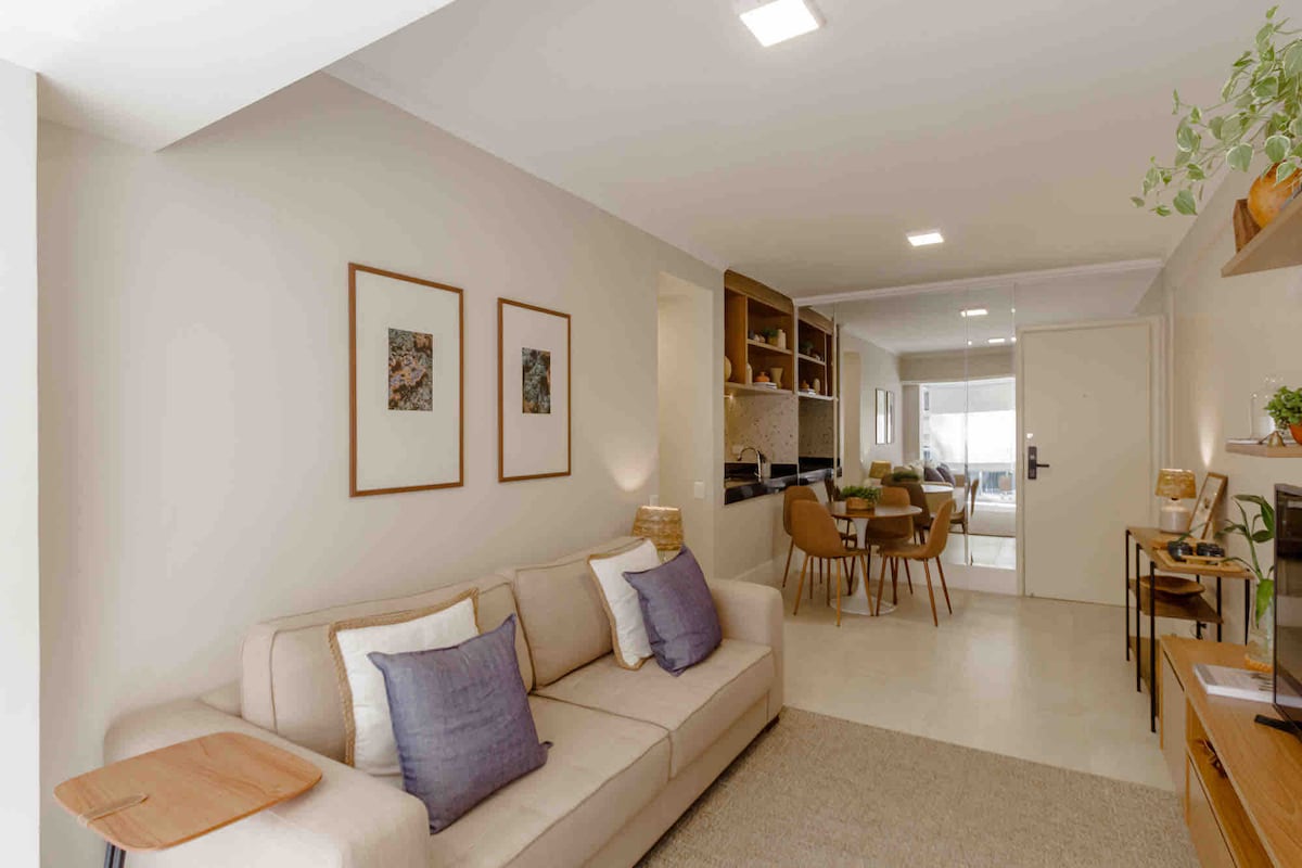 Ef þú hefur áhuga á náttúrulegri birtu er þetta stúdíó í Vila Madalena fullkominn staður. Staðsett á fyrstu hæð, við rólega götu, steinsnar frá fallegum almenningsgarði og öllum börum, veitingastöðum, listasöfnum og lifandi tónlist sem Vila Madalena hefur upp á að bjóða. Stúdíóið er með hjónarúm, skáp, vinnusvæði, 43"sjónvarp, eldhúskrók, loftkælingu og heitt vatn á baðherberginu. Íbúðasamstæðan er með endalausa sundlaug, þvottahús, eldstæði, sólarhringsmóttöku og sameign.