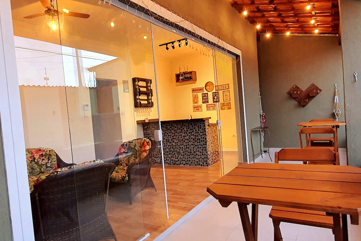 Hús byggt til að taka vel á móti fjölskyldu minni sem er nú í boði fyrir þig, fjölskyldu þína og vini. Þremur húsaröðum frá ströndinni er hún rúmgóð, rúmgóð og útbúin til að tryggja ógleymanlega dvöl. Staðsetningin er einstaklega þægileg þar sem hún er nokkrum húsaröðum frá matvöruverslunum, apótekum o.s.frv. án þess að missa þá ró sem þú átt skilið. Það er nálægt sögulega miðbænum, í 15 mínútna akstursfjarlægð frá Riv. de S. Lourenço og 5 mín. frá ferjunni til Guarujá. Mér er ánægja að taka á móti þeim!