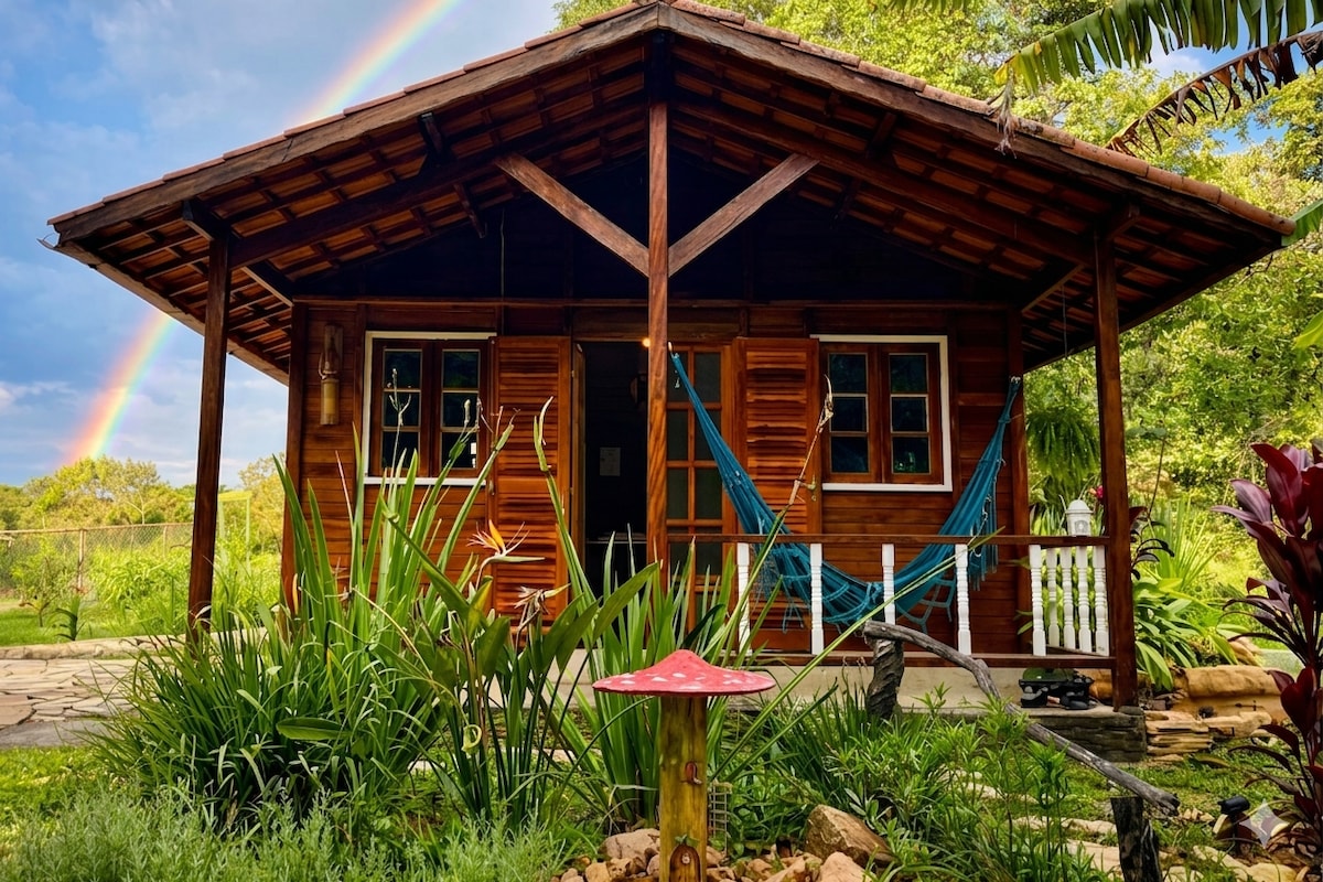 Apresentamos a Cabana Pachamama no Ecovalle , com sala, cozinha equipada, três quartos, dois banheiros e um lavabo. Rodeado pela natureza exuberante, oferece contato constante com o verde. Próximo a pousadas, criando atmosfera acolhedora e chance de interação. Desfrute da beleza natural, explore cachoeiras e crie memórias inesquecíveis no EcoValle.