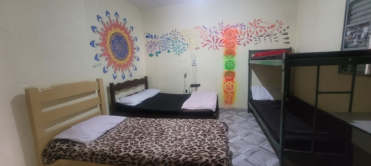 Deilt fyrir allt að fimm manns, fullkomið fyrir þá sem vilja félagslega og hagnýta upplifun. Húsið er staðsett í forréttinda stöðu, steinsnar frá dularfulla pýramídanum og Pça Matriz og býður upp á greiðan aðgang að öllum helstu kennileitum og þjónustu borgarinnar sem tryggir þægindi og þægindi Við erum með einstakt einkaútlit aftast til að fá fráteknara sólsetur ( nálægt rústunum!) OBS:ER FARFUGLAHEIMILI, HERBERGIÐ RÚMAR ALLT AÐ 5 MANNS. *BORA SOMAR ASTRAL??*