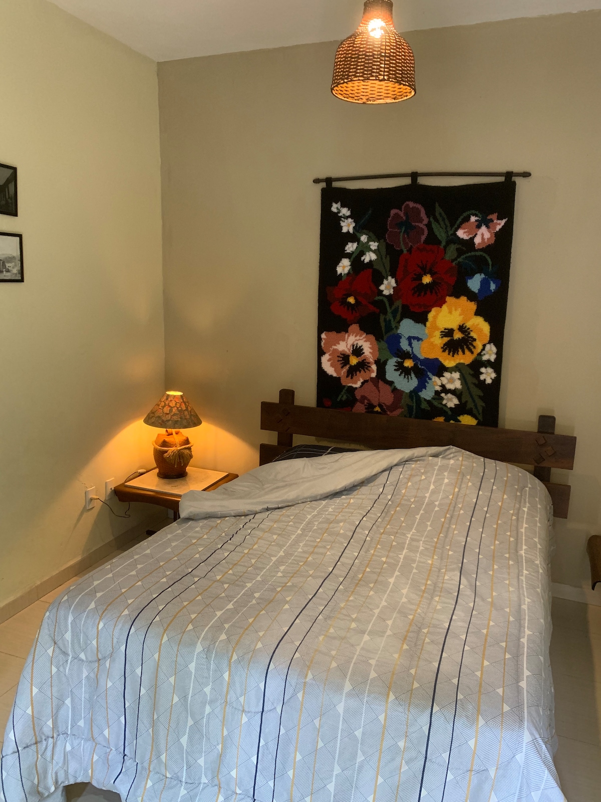 Nossa suíte é completamente independente, espaçosa e com camas confortáveis. O carinho e atenção são nossos diferenciais. O banheiro é amplo e sempre muito bem higienizado. Temos camas de casal e de solteiro, uma bancada com pia, filtro de barro e frigobar. Dependendo da época, poderá se deliciar com uvas que encobrem a varandinha, um lugar especial para curtir a natureza. Nosso estacionamento é super seguro. Ficamos na distância perfeita, silencio e tranquilidade a um pulo para o centro.