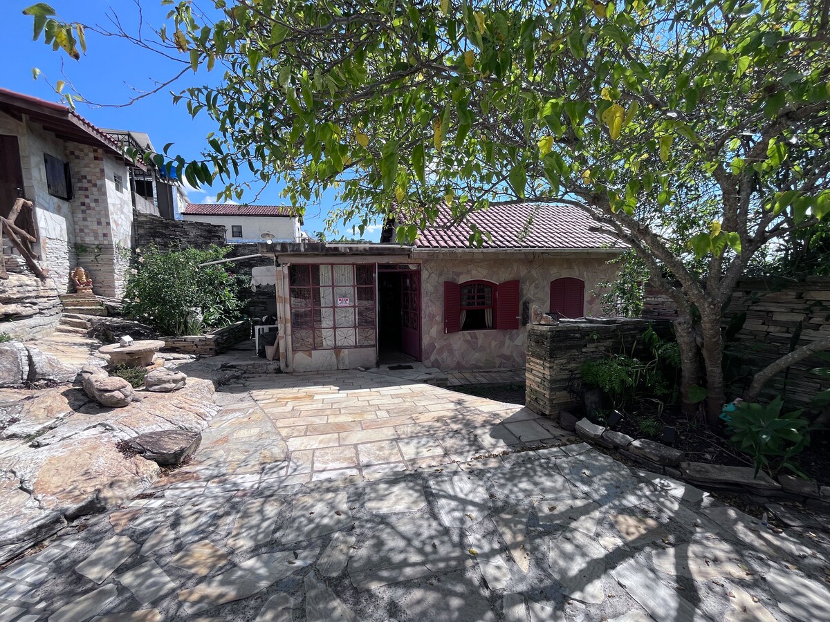 Charmosa casa de pedra, em frente aos principais pontos turísticos da cidade, Pirâmide de Pedra, Cruzeiro e Pedra da Bruxa. Espaço de convivência amplo e bem arborizado, próximo a um dos pontos de encontros de turistas e moradores da cidade, com música ao vivo, shows, drinks exóticos e bares temáticos. Dispõe de Cama de Casal no Quarto, e sofá-cama na sala, cozinha com cafeteira, três corações, micro-ondas, Air-Fryer, liquidificador, fogão, geladeira e WI-FI. (Comporta até 4 pessoas).
