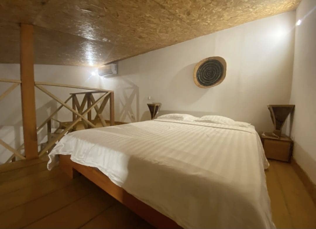 Einn af fallegustu og náttúrulegustu ströndum eyjunnar São Tomé er meira að segja sérstakur staður við Praia Jalé. Bústaðirnir okkar eru frábærir fyrir þægindi og útsýni yfir ströndina og bjóða upp á hljóð frá öldunum sem félagi, tilvalinn fyrir einn eða fleiri daga. Bústaðurinn okkar rúmar 1 eða 2 einstaklinga (verð sem er sýnt fyrir 2 einstaklinga; hafðu samband til að fá sérsniðið verð). Morgunverður og þráðlaust net er innifalið í virði dvalarinnar. Ferðamannagjaldið (2,10 evrur á mann á nótt er innheimt á staðnum).