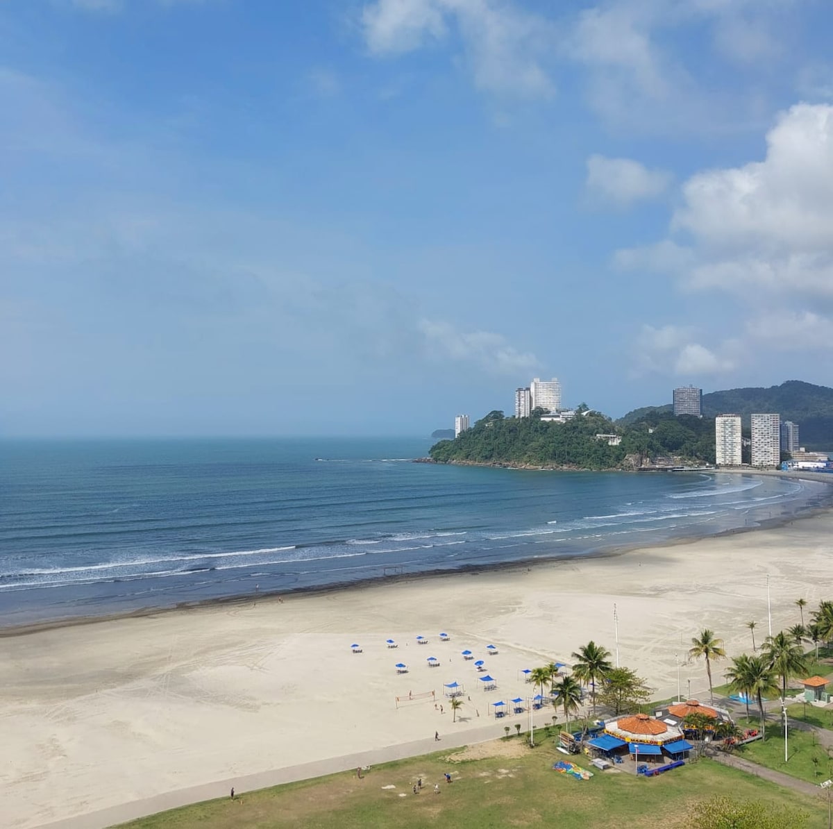 Gaman að fá þig í hópinn! :) Gleymdu vandamálunum: Njóttu strandarinnar, loftslagsins, skoðunarferða. Farðu niður úr byggingunni til að komast á ströndina! TV com Chromecast! (Til að spegla símann í sjónvarpinu) Njóttu þessa dásamlega útsýnis: Vinstra megin sérðu landamæri Santos og hægra megin við Porchat-eyju. Í nágrenninu eru markaðir, bakarí, apótek og þægindi allan sólarhringinn. Fullbúið eldhús. Móttaka allan sólarhringinn. Tilvalið fyrir par. FIque getur spurt spurninga með mér :)