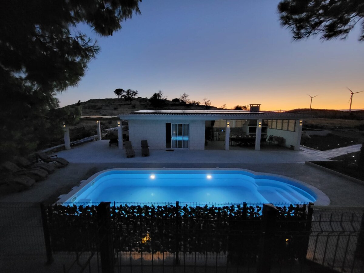 Þessi heillandi eign með fallegu dalmatíu steinhúsi var nýlega endurnýjuð til að taka á móti 4 + 1 fólki, yndislegu borðstofu og afslappandi setustofu, steinbyggðu grilli, einka upphitaðri sundlaug, sólbekkjum og setustofu til að njóta hvers augnabliks í fyrirfram þökk. Poperty hefur verið endurreist með ást og umhyggju, veitir einnig alla kosti nútíma lífsstíls. Það er staðsett á hæð í þorpinu Vinišć. Þú munt njóta fallegs sólseturs og friðsællar afslappandi nætur.