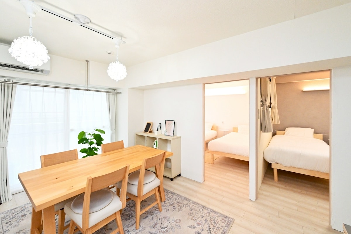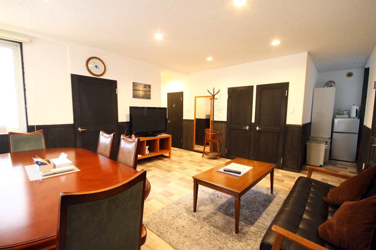 Þessi íbúð (75㎡ / 811 sqft) var fullkomlega enduruppgerð veturinn 2026. Hún rúmar allt að átta gesti og er fullkomin fyrir fjölskyldur eða hópa. Aðeins 9 mín göngufjarlægð frá JR Shiroishi-stöðinni og aðeins 2 stoppistöðvar (16 mín frá dyrum til dyra) að JR Sapporo stöðinni. Það felur í sér þráðlaust net, 4 hjónarúm, loftræstingu í stofunni, þvottavél, fullbúið eldhús og 1 ókeypis bílastæði. Á svæðinu er 7-Eleven, lyfjaverslun, stórmarkaður og veitingastaðir í nágrenninu; frábært fyrir lengri dvöl í rólegu hverfi.