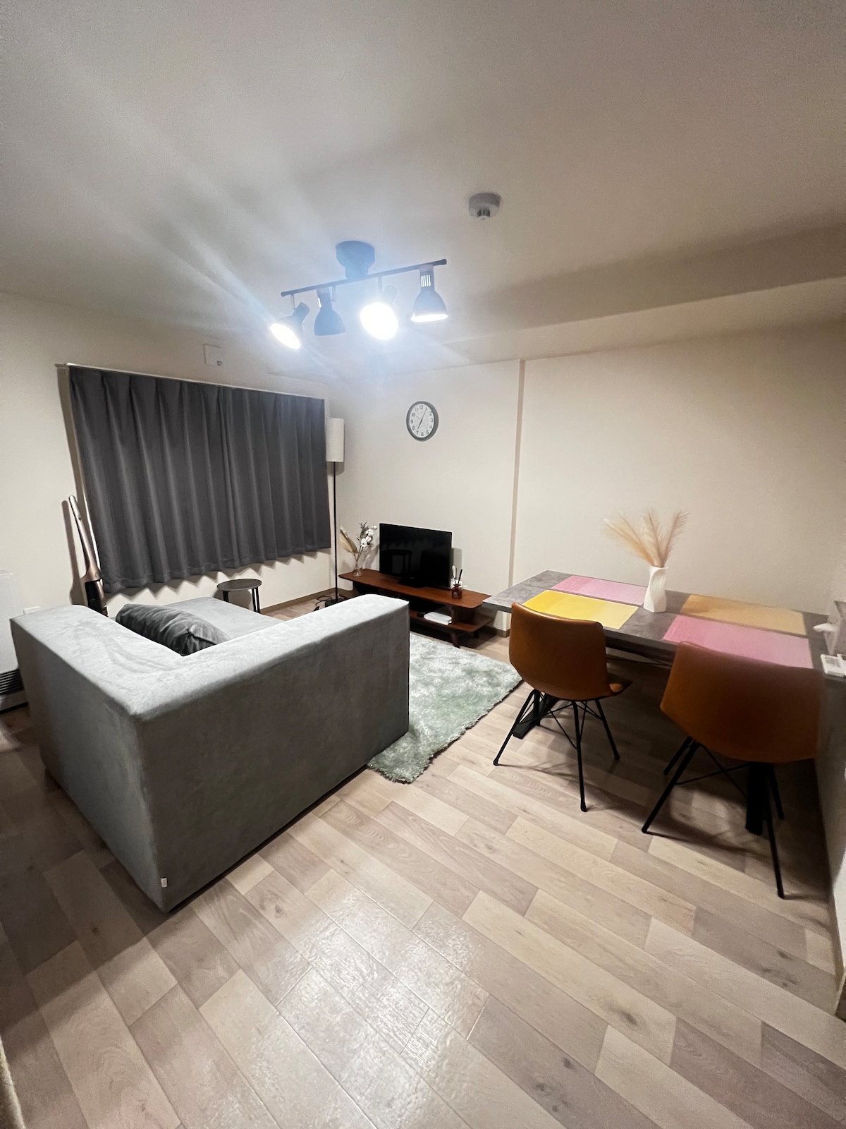 Þetta er rúmgóð 2LDK!Aðstaðan er einnig tandurhrein því að þetta er nýbygging!Hún er fullbúin með borðstofuborði, loftkælingu o.s.frv.! ◆Aðgengi◆ Staðsett um 15-20 mínútur með bíl eða leigubíl til Odori Park, Nijo Market og Sapporo Dome!Einnig er hægt að fara í dagsferð í bað á Jozankei Onsen á um það bil 40 mínútum aðra leiðina!!Það er ókeypis bílastæði svo þú getur komið á bíl! Með almenningssamgöngum [7 mínútna göngufjarlægð frá Sumikawa-stöð á Namboku-línunni] tekur ferðin að Odori-stöð um 10 mínútur. Það er einnig bein rútubraut til nýja Chitose-flugvallarins fyrir framan Sumikawa-stöðina, svo það er þægilegt! Það eru margar matvöruverslanir, þægindaverslanir og veitingastaðir í kringum neðanjarðarlestarstöðina.