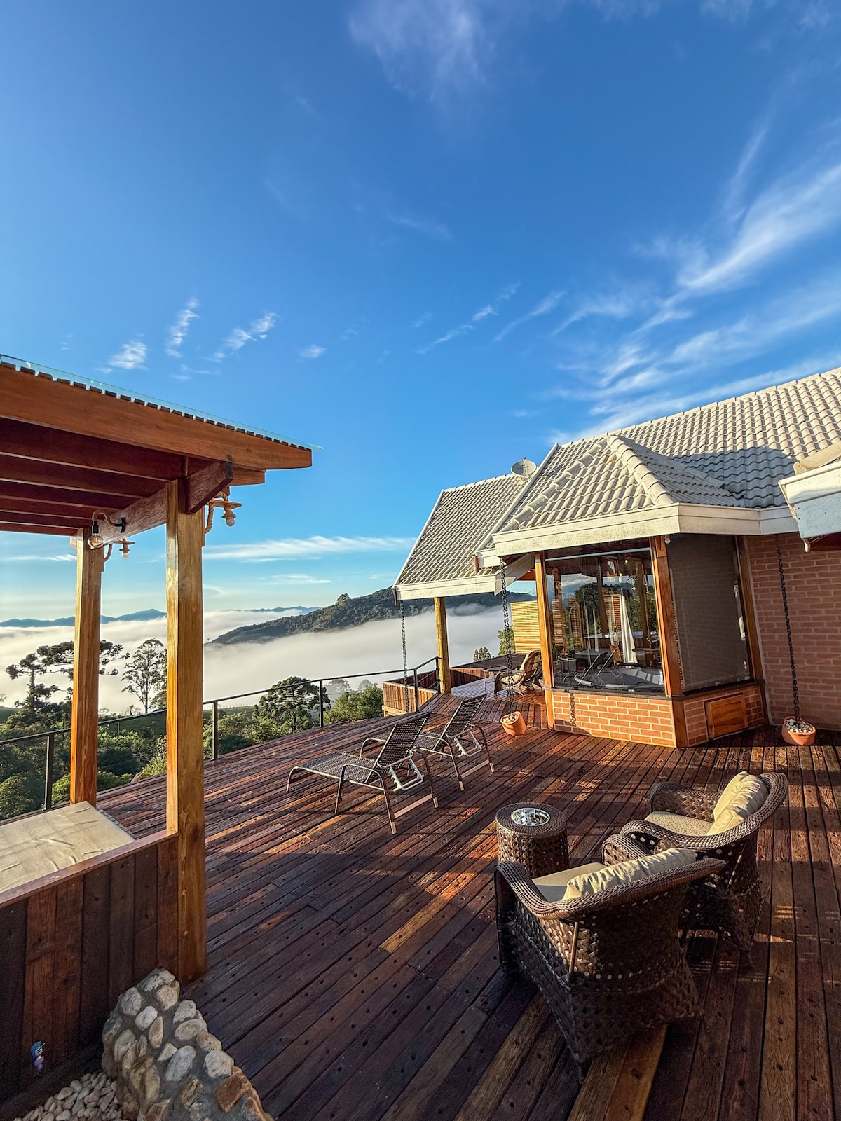 Kynnstu töfrum Serra da Mantiqueira í þessum kofa sem er hannaður svo að þú getir íhugað sólarupprásina án þess að fara fram úr rúminu. Slappaðu af í upphituðu heilsulindinni okkar, stjörnuskoðun á loft- og sveiflunetinu. Í cabana er sambyggt herbergi með notalegu Queen-rúmi. Í stofunni/eldhúsinu rúmar mjög þægilegt fúton tvo gesti í viðbót og því er upplifunin tilvalin fyrir fjölskyldur. Í eigninni eru einnig slóðar og litlir fossar. Þessi síða er einstakt afdrep.