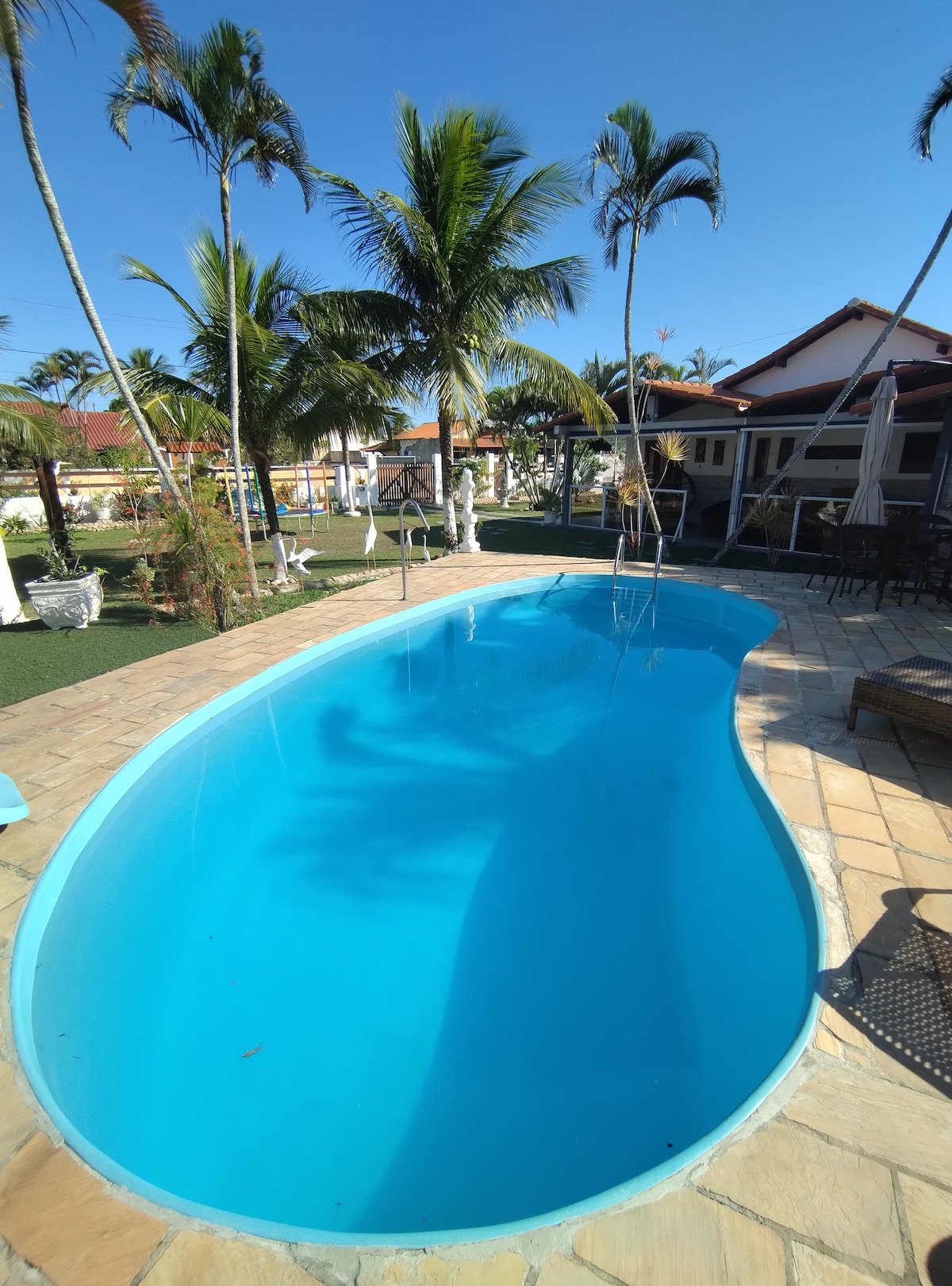 A casa é excelente ,tem toda infra estrutura para seus hóspedes, ônibus da 1001 passa na porta . colocamos roupa de banho ,cama,papel higiênico ,sabonete, shopool para seus hóspedes ter mais conforto na hora de viajar Toda área de lazer pertence a casa ,não O condomínio fica na rua da praia e a casa fica na primeira rua Nos fundos do condomínio existe um segundo pó portão de saída e entrada de veículos,onde fica a lagoa que tem ciclovia….. Comércio perto, padaria, restaurante,mercado……..
