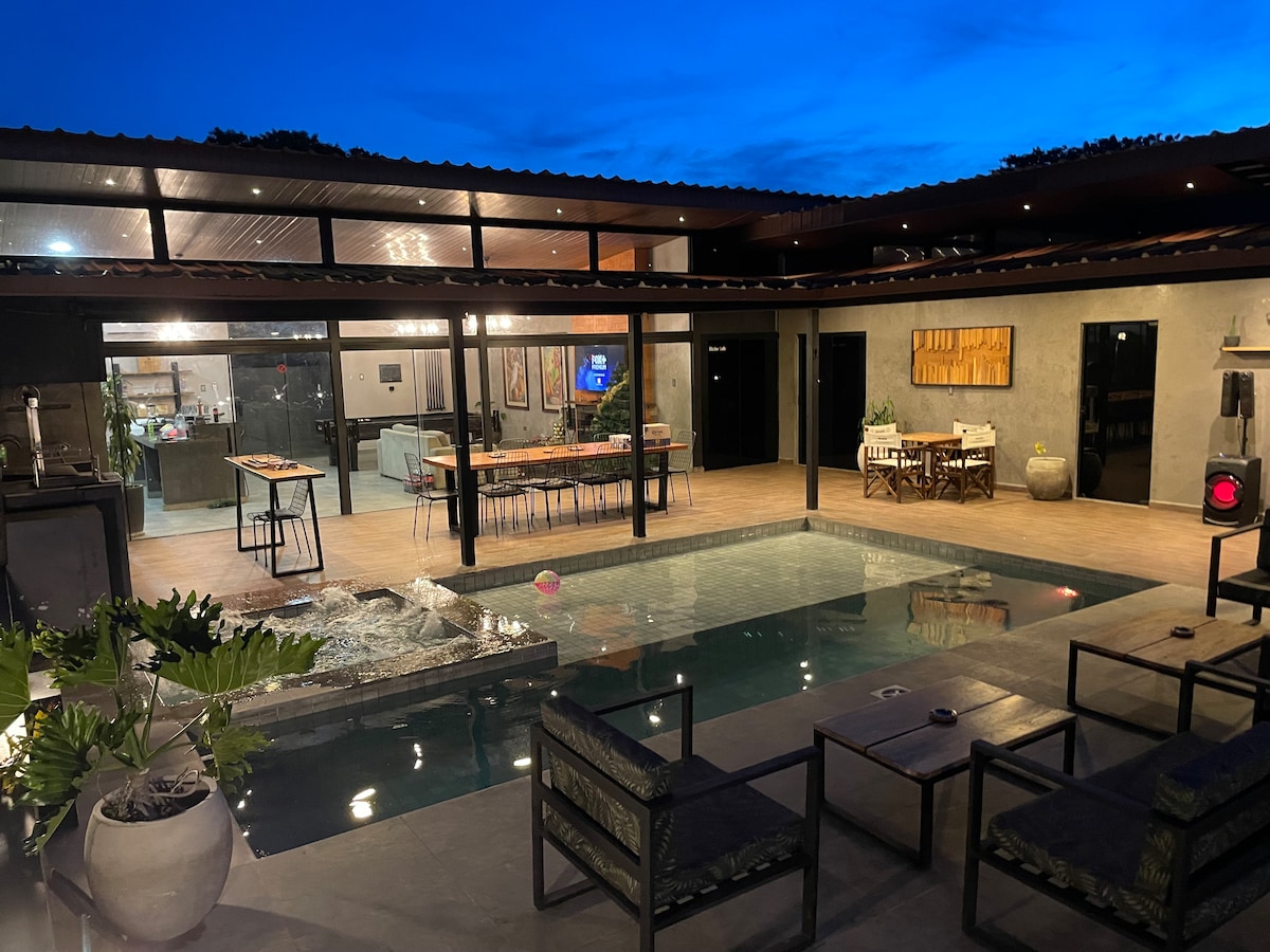 Apollonio er 12 manna sveitahús í Santa Cruz í 10 mínútna fjarlægð frá Warnes og 6 mínútna fjarlægð frá La Belgium. Frábært til að halda fjölskyldufundi eða með vinum og halda upp á afmæli. Sundlaug, nuddpottur með nuddpotti, loftkæling í öllu húsinu, þráðlaust net, kapalsjónvarp, hljóðbúnaður, billjardborð, borðtennisborð, pílur, churrasquera, kínverskur kassi, rafmagnsgrill, arinn, herbergi með sérbaðherbergi og sameiginleg baðherbergi.