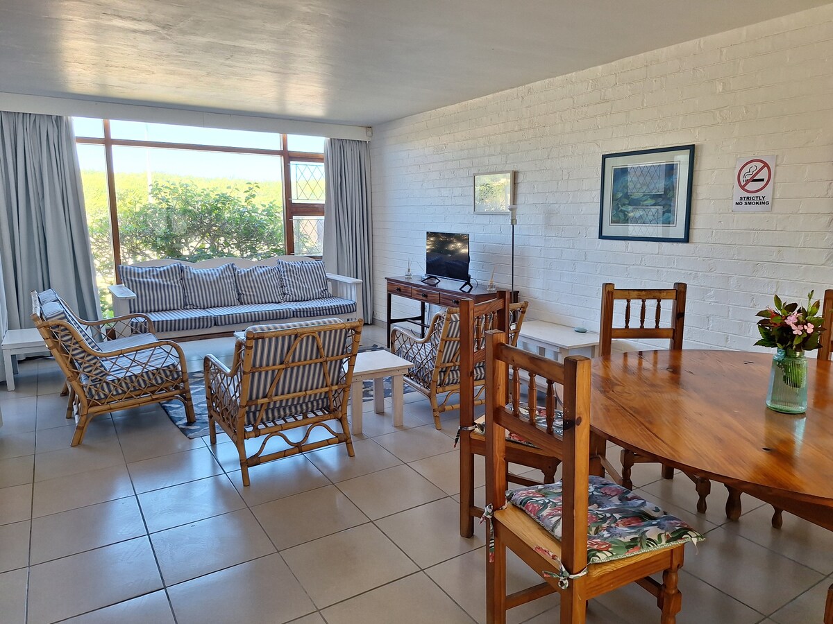 Only 300m from the banks of the Knysna Lagoon, Belvidere102 is a lovely well equipped and well furnished flat. Climb the stairs you find yourself amongst the trees . The balcony has pleasant views from this two bedroomed flat. Belvidere102 has fibre wifi, and Satellite TV. The deck has a BBQ. Nearby are the lovely beaches of Brenton and Buffels Bay . Knysna town is 10 minutes away yet Belvidere offers peace and safety, children play freely. Breakfast at the Manor, dinner at the Bell, 200m away.