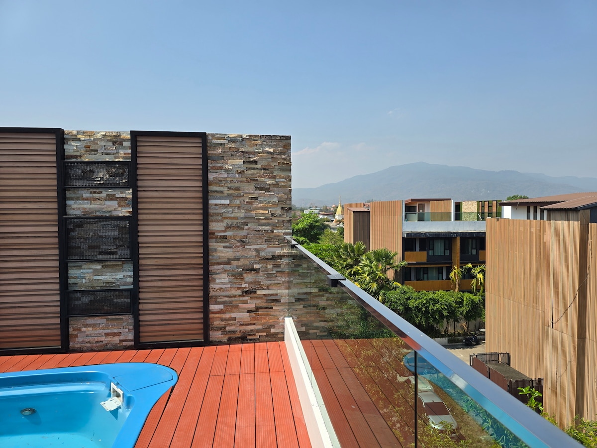 **Mjúk dýna úr minnissvampi, bæbæ, hefðbundin dýna í taílenskum stíl ** Falleg sundlaug, líkamsrækt og sána eru ókeypis Slakaðu á og slakaðu á í þessu rólega og stílhreina rými. Vertu einbeittur og afkastamikill í þessari kyrrlátu og fáguðu vinnuaðstöðu. Chiang Mai, miðstöð stafrænna hirðingja í heimsklassa, og íbúðin okkar er fullkominn valkostur fyrir þig til að leggja af stað í þessu blómlega stafræna samfélagi hirðingja. Verið velkomin til Chiang Mai!