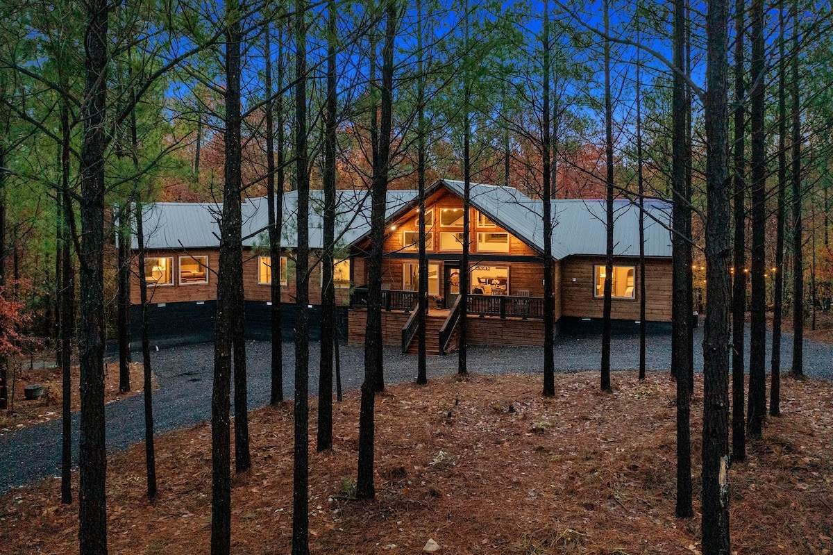 Vertu meðal þeirra fyrstu sem gista í þessum fallega nýja kofa! ***MALBIKAÐUR VEGUR alla leiðina að kofanum. NO 4WD/AWD þarf til að fá aðgang eins og aðrir** Ertu að leita að rómantísku fríi? Viskífurur gætu verið kofinn fyrir þig. Þessi notalegi kofi er staðsettur í hinum glæsilega skógi Ouachita-fjalla og býður upp á upplifun sem þú munt aldrei gleyma. Skálinn er með opið gólfefni með gluggum úr gleri sem fara upp alla 20 feta loftin. Töfrandi einkaverönd hefur tilfinningu fyrir trjáhúsi sem er lokað í Pine trjám.