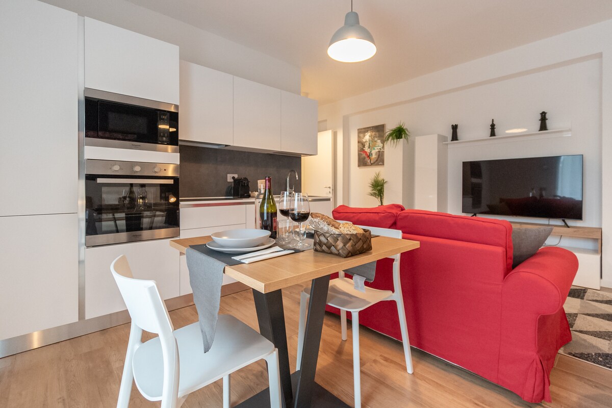 UBIK 195 er nýtt íbúðarhúsnæði í sögulegum miðbæ Padua. Stefnumótandi staðsetning nálægt Prato della Valle, Botanical Gardens, Basilica del Santo og dómkirkju Santa Giustina, helstu aðdráttarafl borgarinnar, með neðanjarðarlestarstöð í göngufæri og framúrskarandi vegatengingar til og frá borginni. Mjög hljóðlát hönnunaríbúð með stórri verönd og einkabílastæði.