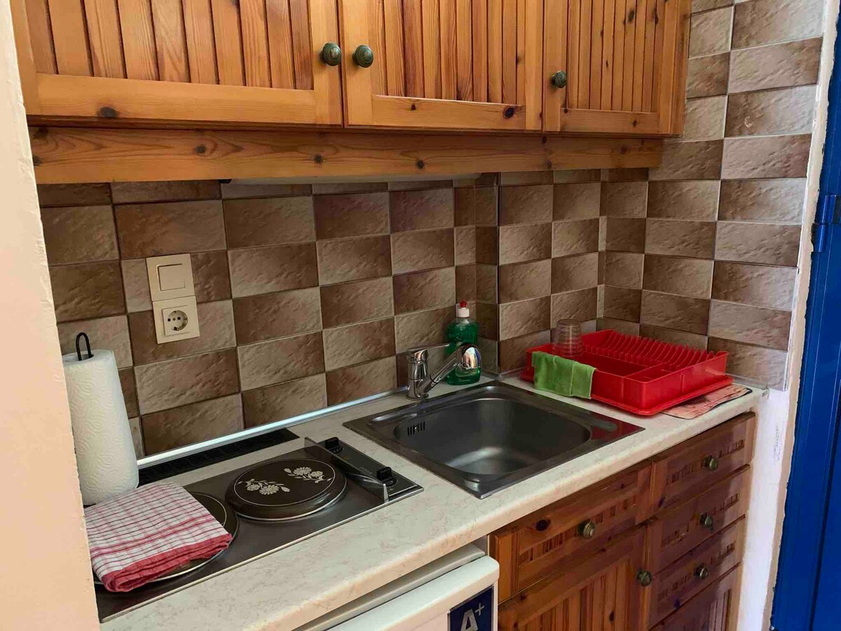 Innan „Green Coast“ samstæðunnar er aðeins 1 klukkustund frá Aþenu og 15 mínútna göngufjarlægð frá Poseidon-hofinu. Beinn aðgangur að sjónum. Í miðjum risastórum garði. Svefnpláss fyrir 2, eldhúskrókur, svalir, Net, sjónvarp, loftkæling, örugg bílastæði. Aðeins 15 mínútna akstur að Lavrion.